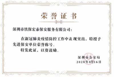 熱烈祝賀我司鐵保宏泰保安榮獲疫情防控工作“先進(jìn)保安單位”稱(chēng)號(hào)
