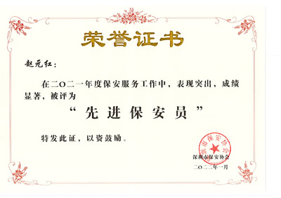 榮獲2017-2023年度深圳市公安局優(yōu)秀保安公司,深圳市保安協(xié)會常務(wù)理事單位(十大常務(wù)理事單位之一)