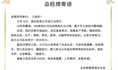 深圳市鐵保宏泰保安服務(wù)有限公司全體同仁熱烈祝賀吉田拉鏈(深圳)有限公司成立30周年!祝福貴司生意興隆,賡續(xù)輝煌。